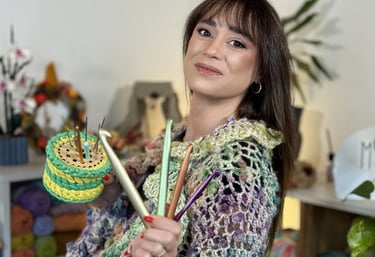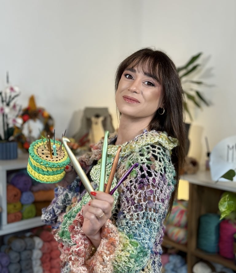 Un uncinetto tra le dita, una base in legno tra le mani, un’idea che prende forma. Questo non è uno shop, è il punto esatto in cui inizi a creare con me.