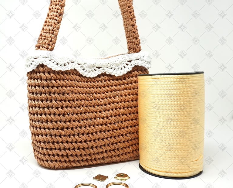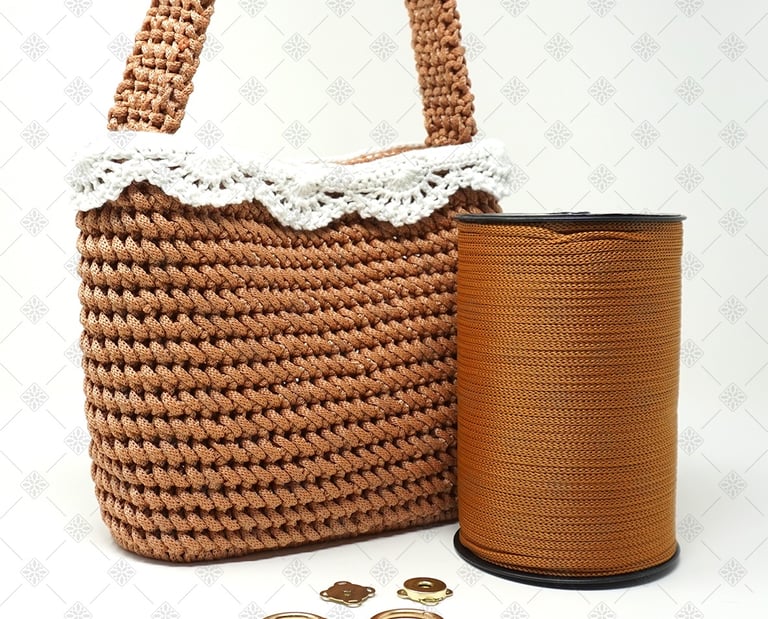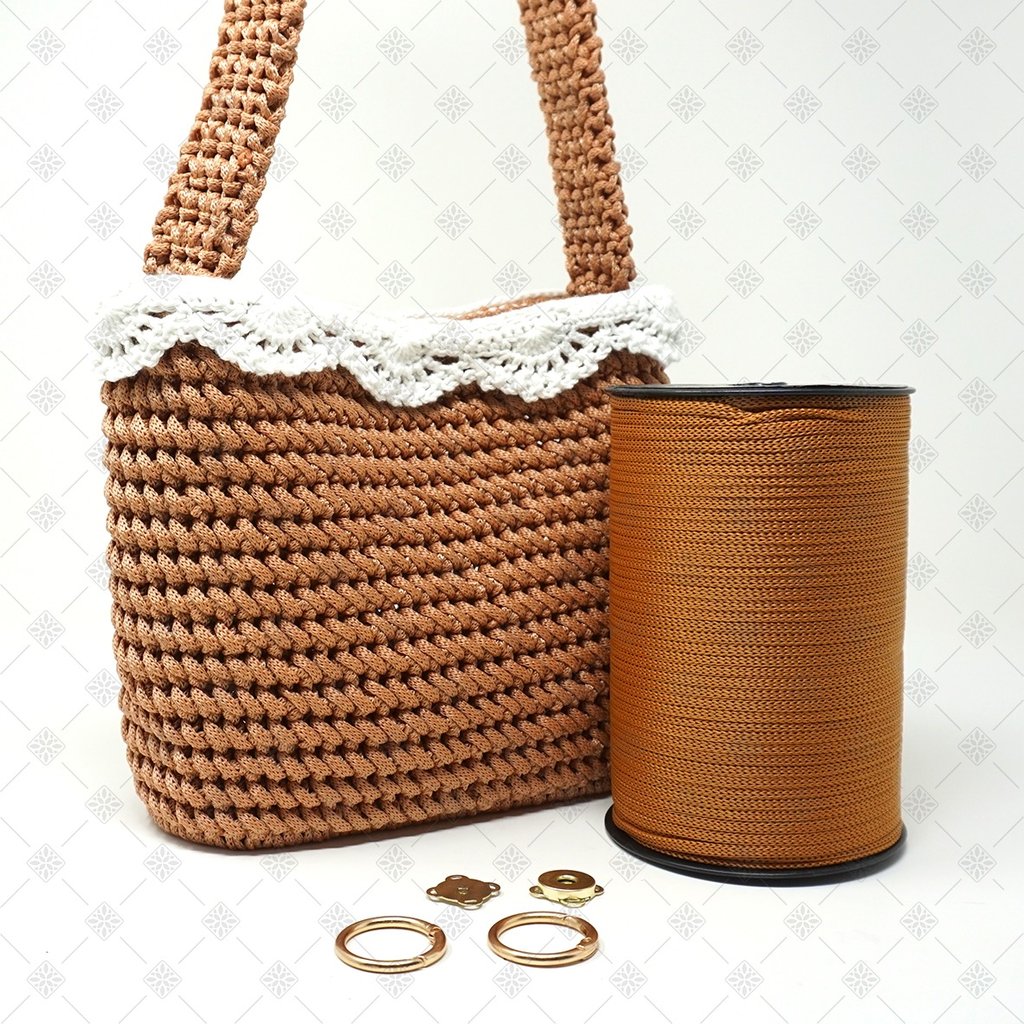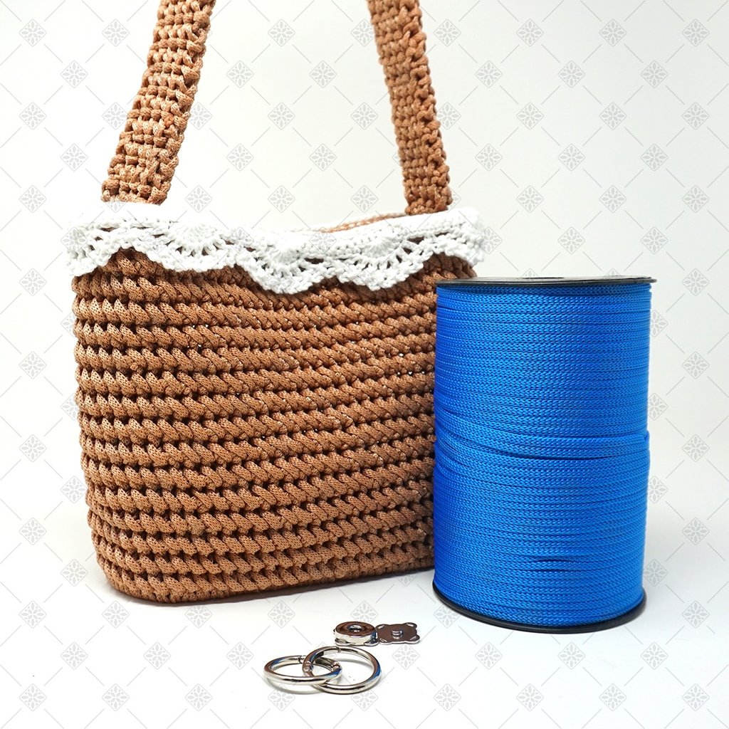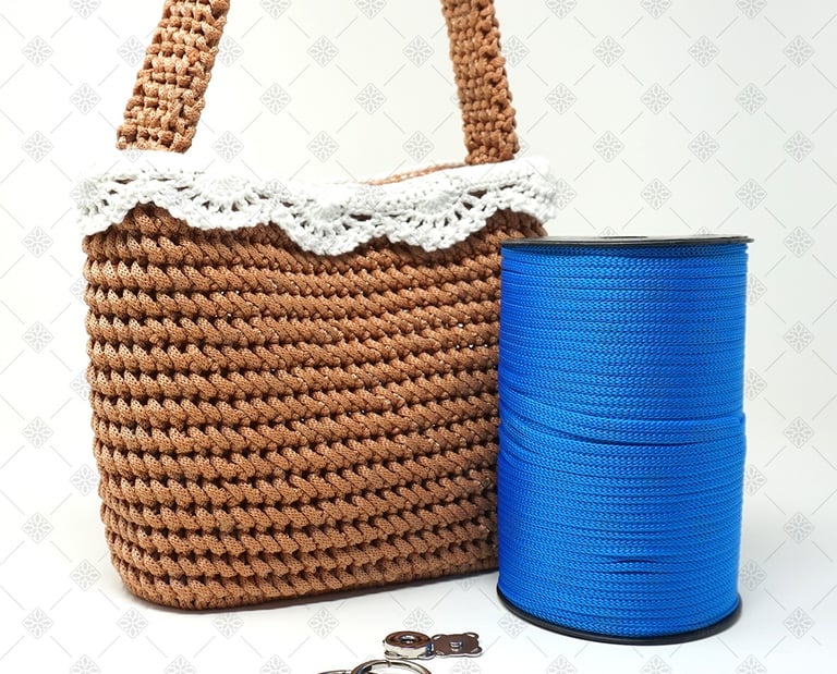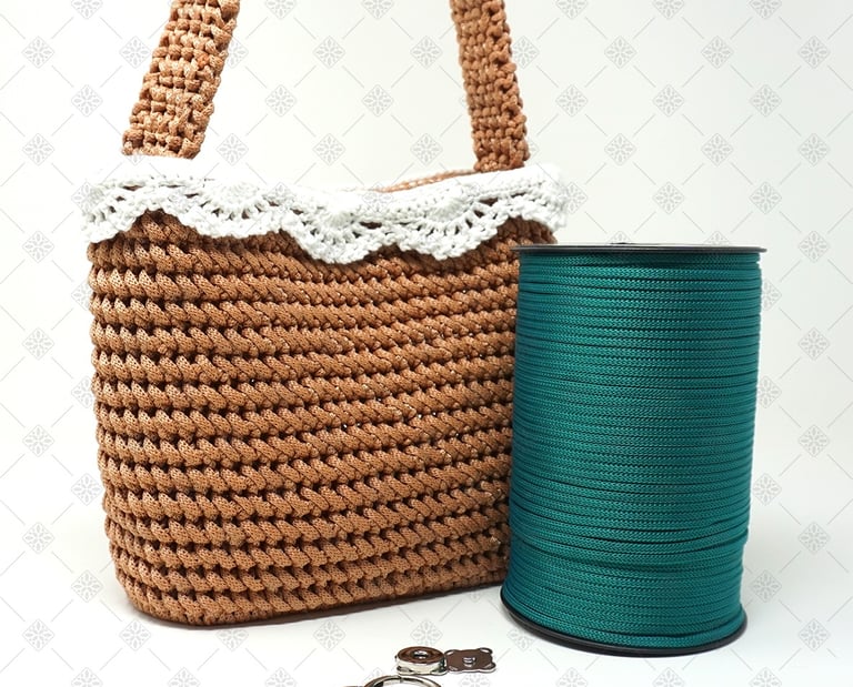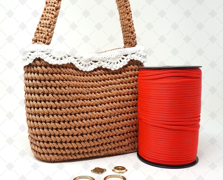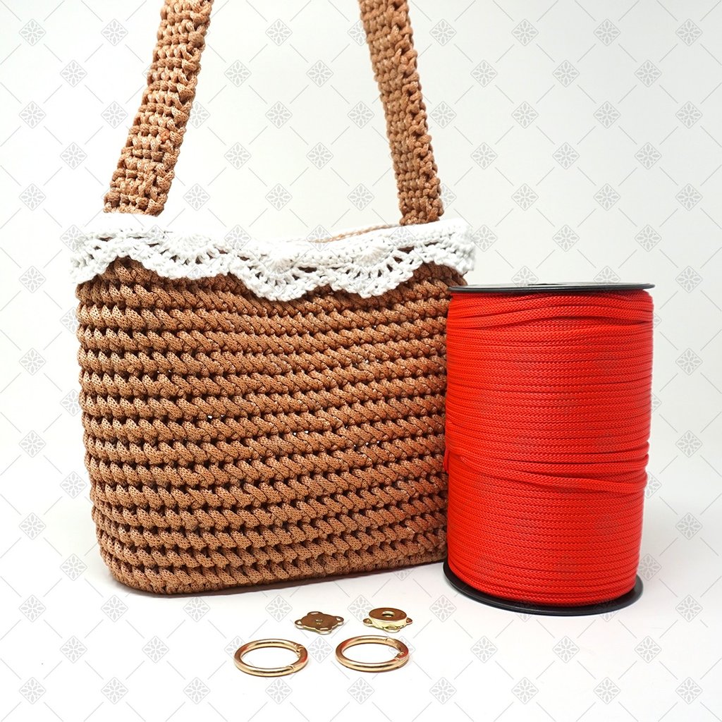 Per questo progetto ho scelto un cordino in polipropilene da 5 mm. Non è una scelta casuale. Questo cordino è perfetto per sviluppare il punto di lavorazione scelto per Karol perché non crea effetto torsione, mantiene il punto ben definito, garantisce una texture pulita e uniforme ed, infine, rende la lavorazione fluida e piacevole. Con altri tipi di cordino non si ottiene lo stesso risultato. La resa finale cambia completamente, ed è proprio per questo che ho deciso di creare un kit completo, così non dovrai preoccuparti di scegliere materiali compatibili tra loro.