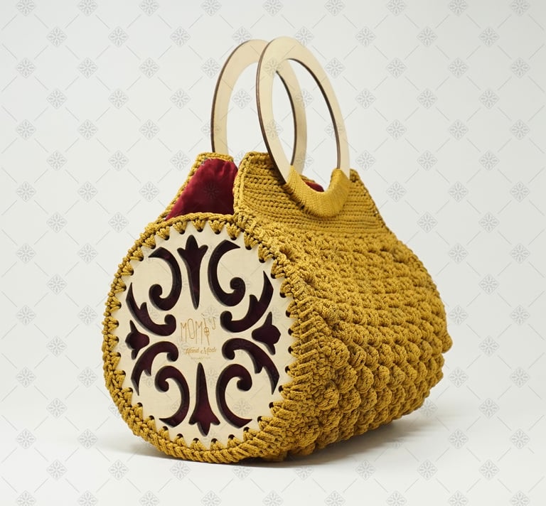 Questo modello è un perfetto equilibrio tra artigianato, creatività e design! Una borsa che si fa notare, riconoscibile e decisamente originale… firmata Momì’s Crochet. La borsa bauletto è un grande classico, ma in questa versione diventa un vero gioiello handmade grazie a basi in legno intagliate dal design esclusivo, manici comodi dalla forma tondeggiante, struttura rigida e stabile, stile moderno, raffinato e senza tempo! È una borsa che non ha età, si adatta a qualsiasi occasione e diventa subito un must have nella collezione di chi ama il crochet.