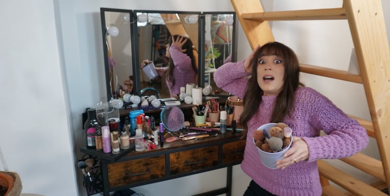 Ho fatto un vero e proprio declutter, eliminando i prodotti scaduti, quelli che non uso più e riorganizzando tutto ciò che mi serve per le registrazioni dei video. Risultato? Una postazione più pulita, funzionale e super luminosa, perfetta per creare contenuti senza stress!