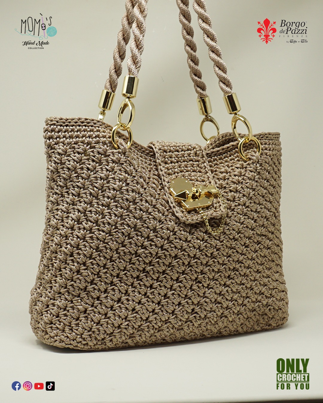 E, infine, chiudiamo con la clutch bag Dakne. Nonostante il tutorial sia online da poco, è già uno dei contenuti più apprezzati dell’anno. In questo progetto vi mostro come realizzare una base tonda perfetta, come lavorare il punto alto incrociato, uno dei punti virali del 2025, e come applicare facilmente una chiusura a molla tonda.