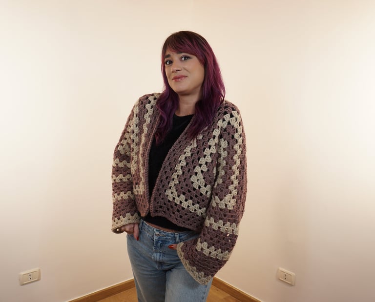 In una classifica dominata dalle borse all’uncinetto, non mi sarei mai aspettata di trovare tra i progetti più visualizzati un capo d’abbigliamento: il cardigan Blaze, realizzato con la tecnica dei due pannelli esagonali granny squares. L’avevo creato anni fa, ma nel 2025 è letteralmente esploso, conquistando tantissimi di voi.